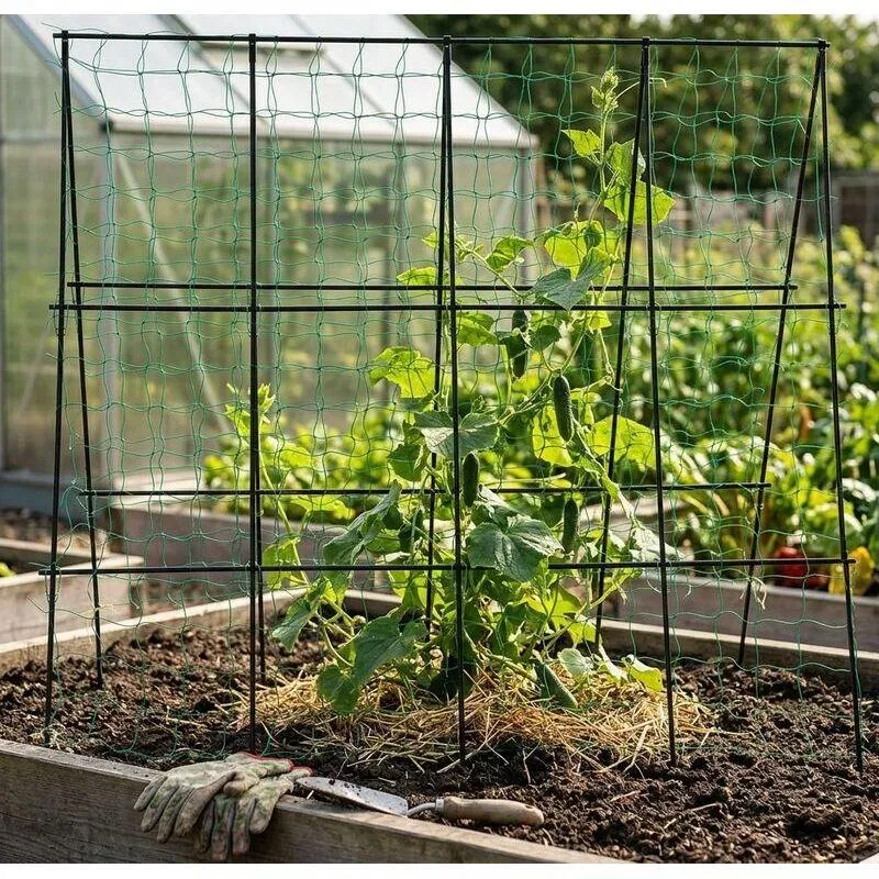 Reprezinta o solutie practica si eficienta pentru gradinarii care doresc sa sustina cresterea verticala a plantelor precum castravetii, fasolea sau mazarea. Acest sistem ajuta nu doar la sustinerea fizica a plantelor, ci contribuie semnificativ si la sanatatea si productivitatea lor, facilitand in acelasi timp o intretinere mai usoara a culturii.