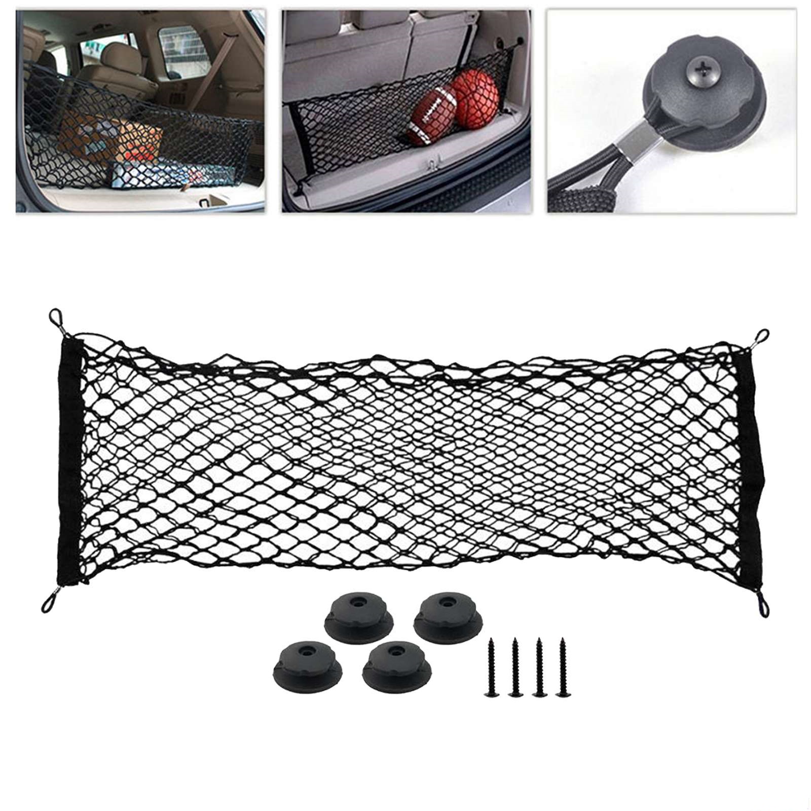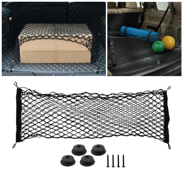 Plasa de bagaje elastica cu buzunar si suporti de montaj, dimensiune 100 x 40 cm