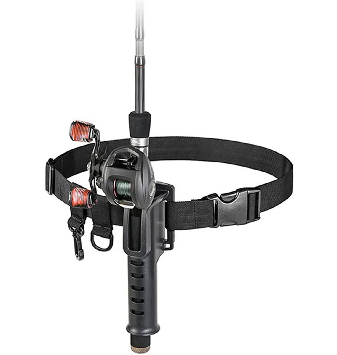 Centura de pescuit ajustabila. Fabricat din nailon elastic și durabil, care îi permite să fie ajustat în talie. Are un suport suplimentar pentru undiță, un inel și un cârlig pentru agățarea accesoriilor suplimentare. Vă permite să transportați comod undița. Un must-have pentru fiecare pescar mai mult sau mai puțin avansat.