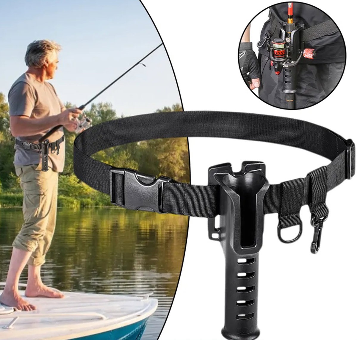 Centrura de pescuit ajustabila, cu suport pentru undita sau lanseta