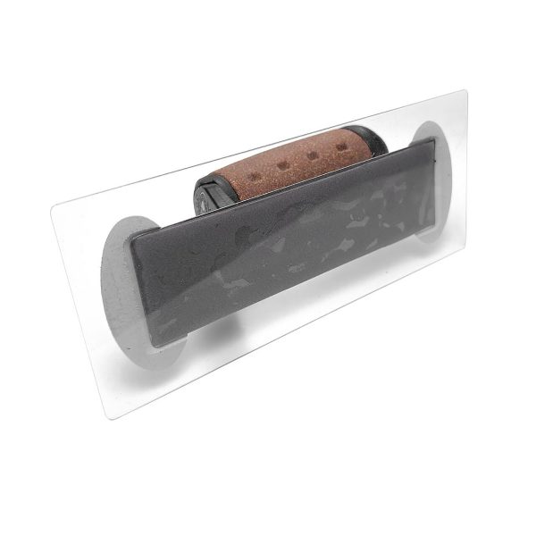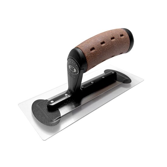 Gletiera inox, intarita, cu zimti 8×8, Premium Silver, 45.7×13 cm x 0.7 mm, maner piele Alcantara, Olejnik