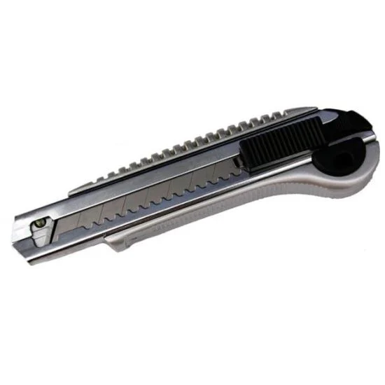 Cutit universal cu lame inlocuibile, corp din otel, maner din aluminiu cu material antiderapant, buton de blocare a lamei.