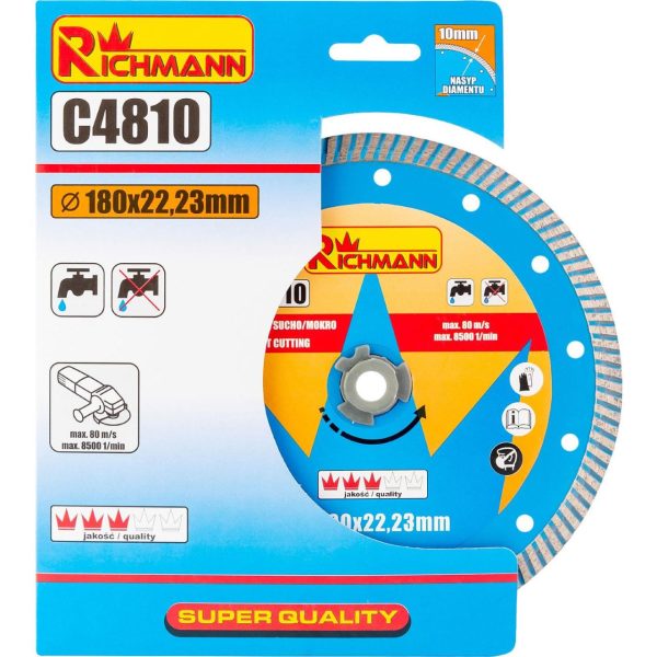 Disc diamantat turbo, beton, taiere umeda si uscata, 180 mm/22.23 mm, Richmann
