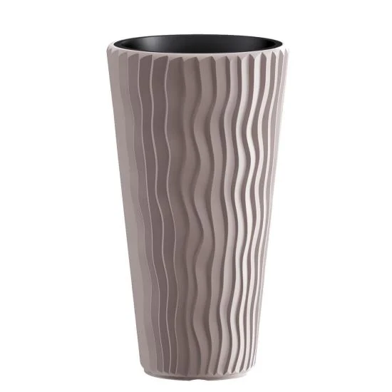 Adauga o nota de rafinament contemporan locuintei sau gradinii tale cu ghiveciul inalt din colectia Sandy. Inspirat de dunele de nisip, acest vas decorativ impresioneaza prin liniile sale verticale ondulate care creeaza un joc de lumini si umbre fascinant. Cu o inaltime de peste 70 cm, este piesa de accent perfecta pentru a pune in valoare plante decorative mari sau flori curgatoare.