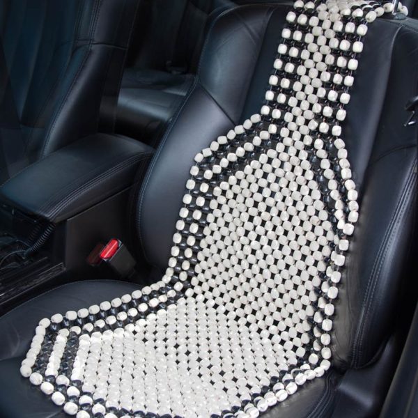 Husa auto cu bile de masaj din lemn (alb cu negru)