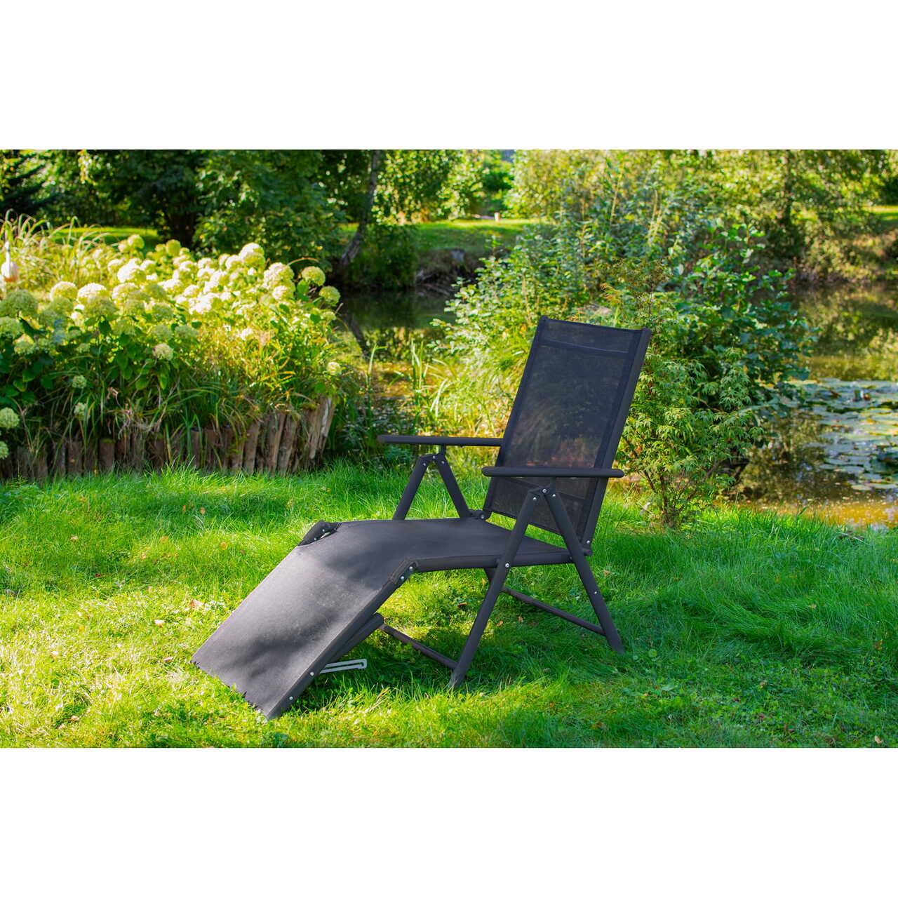 Sezlong pentru gradina, aluminiu, cu plasa, pliabil, reglabil, 110x52x102 cm, Jumi
