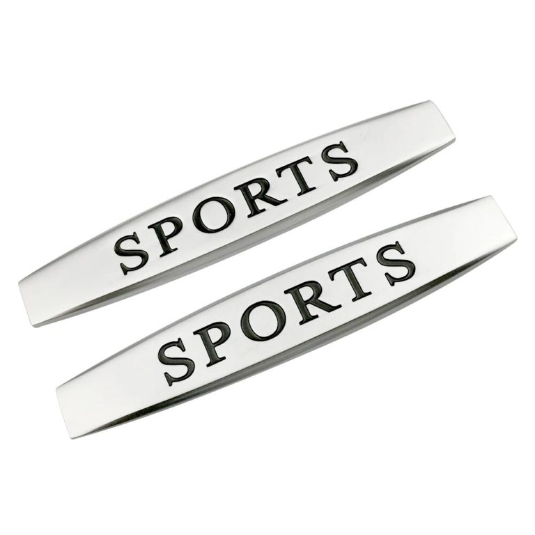 Set 2 x Embleme auto metalice, autoadezive, model “SPORTS”, finisaj Crom, dimensiune, 10 x 1,5 cm