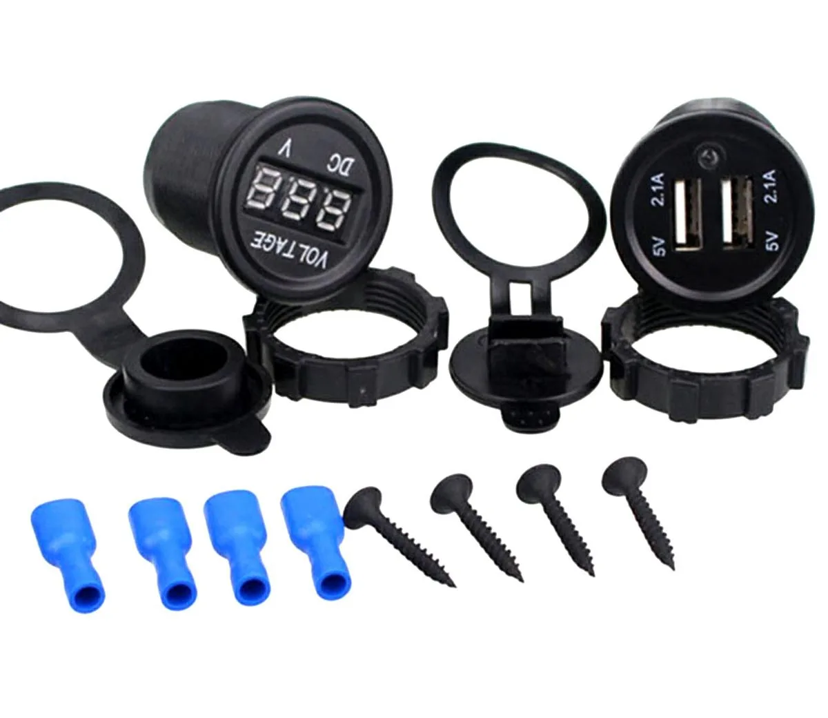 Priză de montare pe mașină cu două porturi USB de 5V și un voltmetru încorporat. Perfect pentru utilizare în mașini, motociclete, mopede, quad-uri și scutere, pe scurt în toate vehiculele care au o brichetă auto de 12V. Vă permite să utilizați două porturi USB încorporate cu un curent total de 3,1 A (2,1 + 1) și un voltmetru încorporat cu afișaj, permițând măsurarea curentă a tensiunii bateriei.
