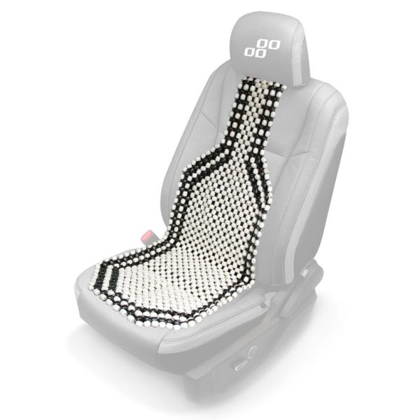 Husa auto cu bile de masaj din lemn (alb cu negru)