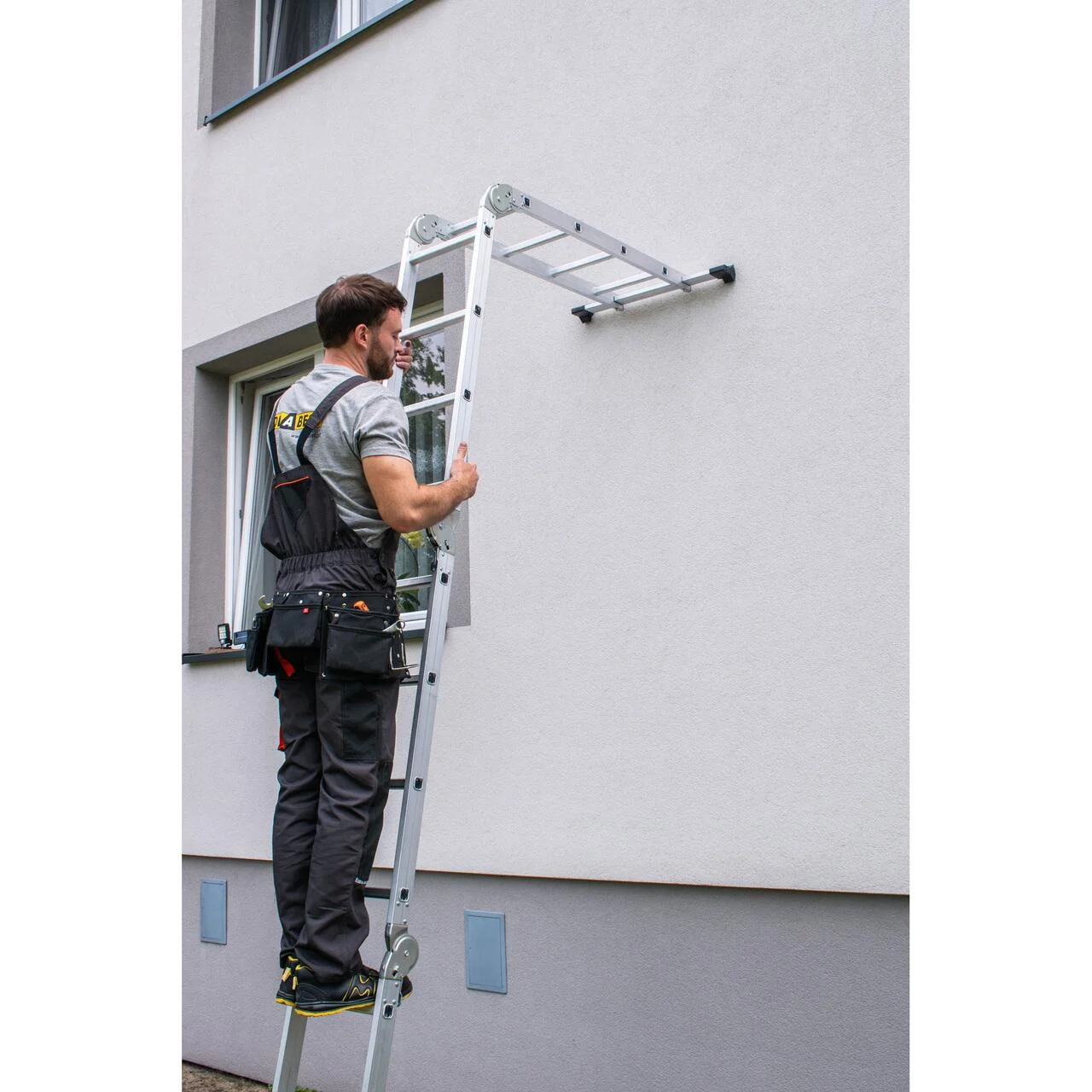 - Este o scara extrem de versatila si practica pentru lucrul in casa sau gradina. Poate fi desfasurata in trei moduri, ceea ce va permite sa-i reglati inaltimea pentru a se potrivi diferitelor sarcini.