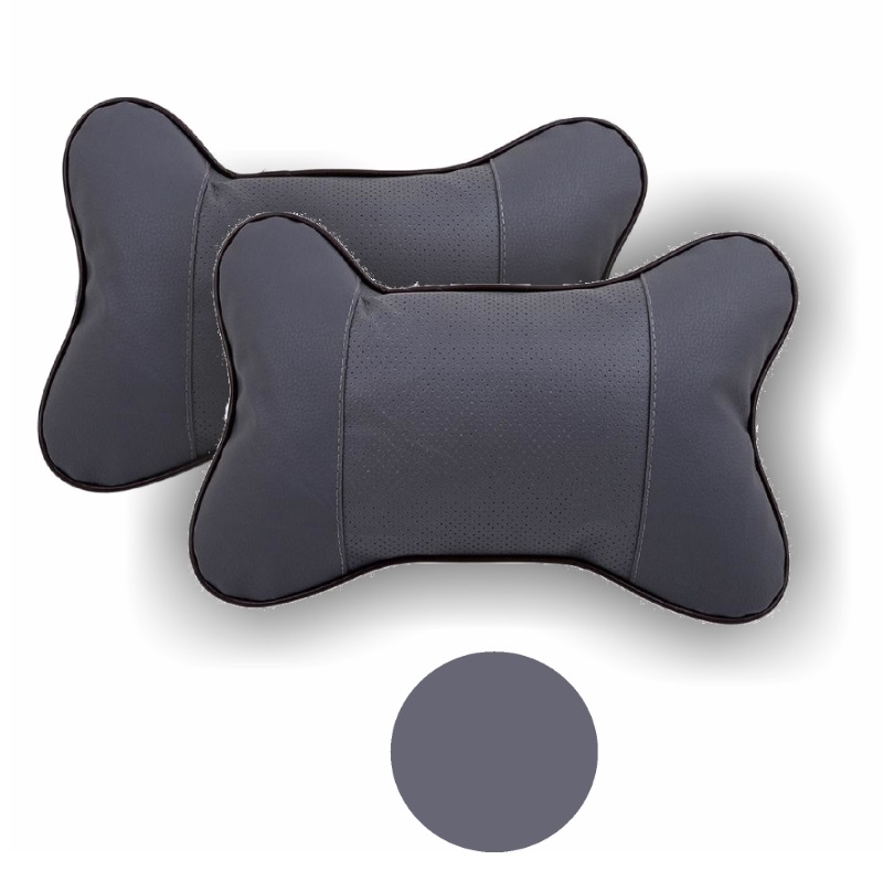 Set 2 buc. perne tetiere auto, pentru sustinere gat din piele ecologica, culoare GRI INCHIS