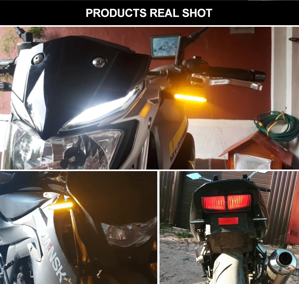 Indicatoare LED universale pentru vehicule cu două roți. Accesoriul perfect pentru motocicleta ta. LED-urile dau o lumină portocalie puternică – îmbunătățind considerabil vizibilitatea. Se potrivesc tuturor motocicletelor cu filet M10 standard.