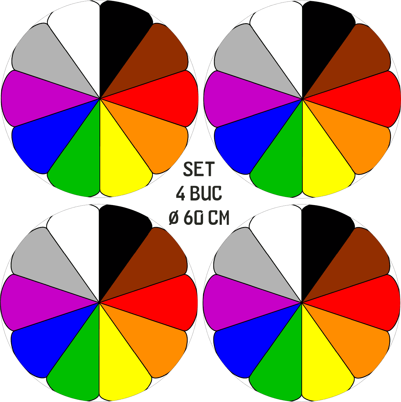 Set 4 Folii Imprimate Outdoor cu EcoSolvent, autoadezive, pentru decorarea jantelor auto, dimetru 60 cm, model FJT-36