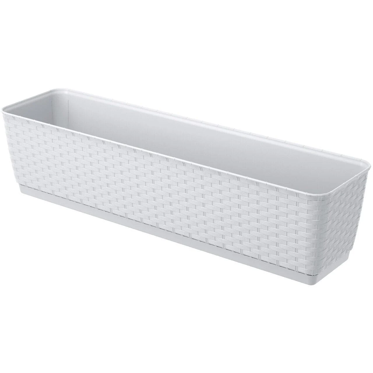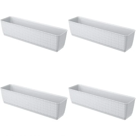 Set 4 jardiniere decorative, Prosperplast, imitatie ratan, alb, 59×15.4×14.2 cm