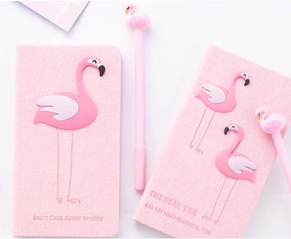 Set Cadou pentru Copii, Caiet cu Flamingo finisat cu piele ecologica + Pix cu Flamingo