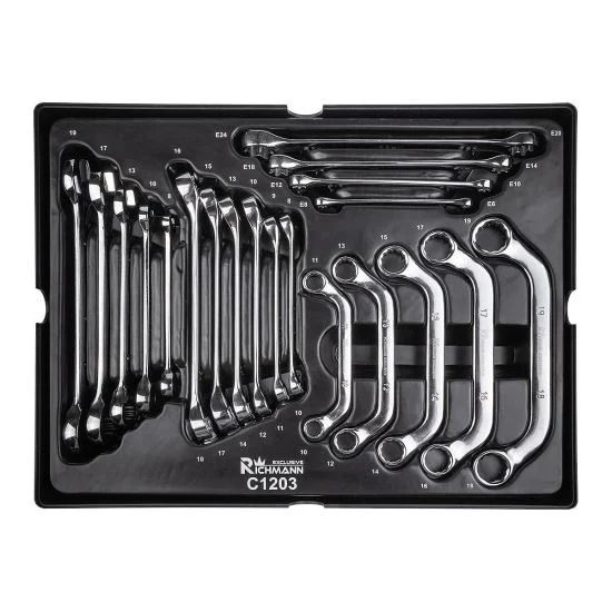 Setul contine 20 de chei fixe scurte fabricate din material de inalta calitate, otel crom-vanadiu (Cr-V), cromate pentru prevenirea coroziunii, lustruite pentru o curatare usoara, destinat profesionistilor.