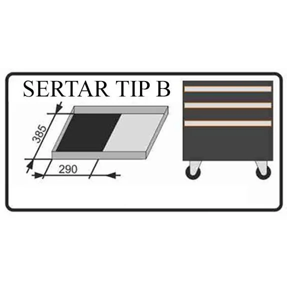 Setul se poate utiliza/depozita individual sau in sertarul de TIP B (385×290 mm) al dulapurilor mobile pentru unelte (C1312, C1280, C1285, C1275, C1270, C1301)