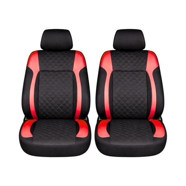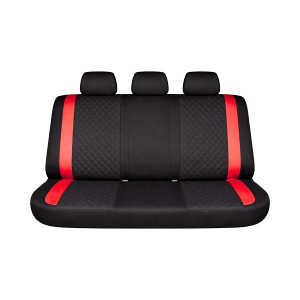 Set huse scaune auto Premium, model DIAMOND Racer, design Sportiv, universale, ergonomice, Piele Ecologica Matlasata, culoare Negru/Rosu
