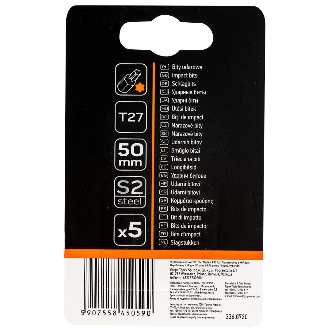 Set varfuri, biti, de impact, Torx, 1/4", 5 buc, T27x50 mm, Neo