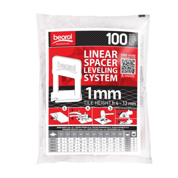 Distantiere pentru nivelare si aliniere a placilor ceramice, 100 buc, 1 mm, Beorol