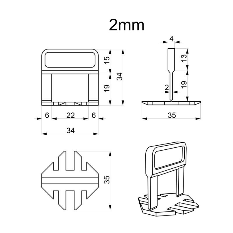 Distantiere pentru nivelare si aliniere a placilor ceramice, 300 buc, 2 mm, cutie carton, Strend Pro