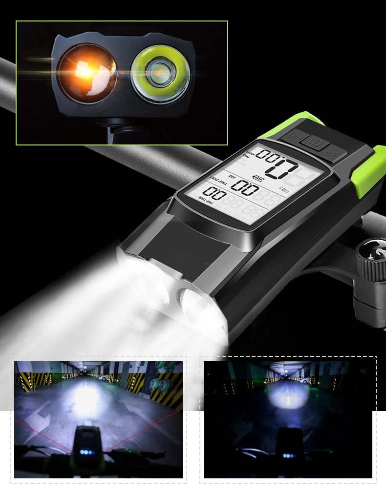 Vitezometru Digital cu lampa Fata + Spate si Claxon, waterproof, pentru bicicleta